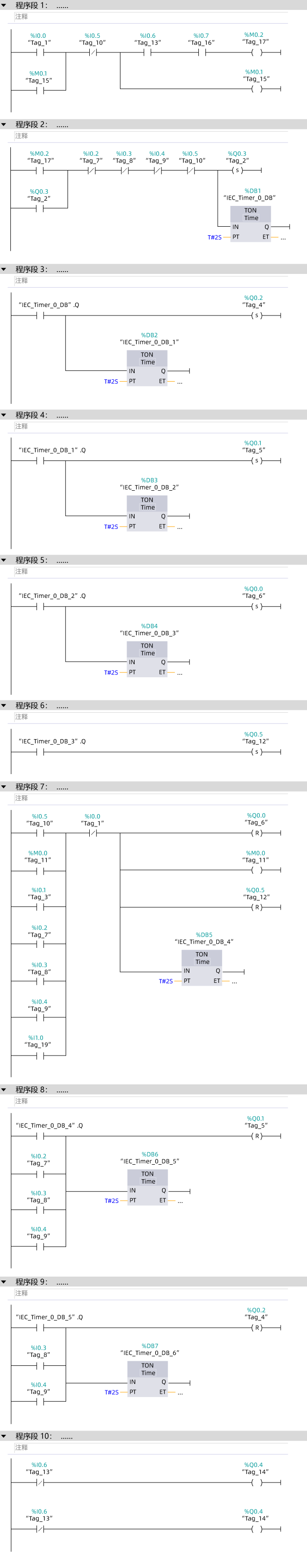 根据给定梯形图搭建程序,调试并观察现象,填写实验报告。