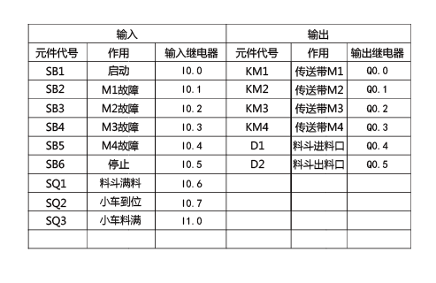 此时,传送带 B1 转动, s 后传送带 B2 转动, s 后传送带 B3 转动, s 后传送带 B4 转动, s 后料斗卸料,出料口 打开。
